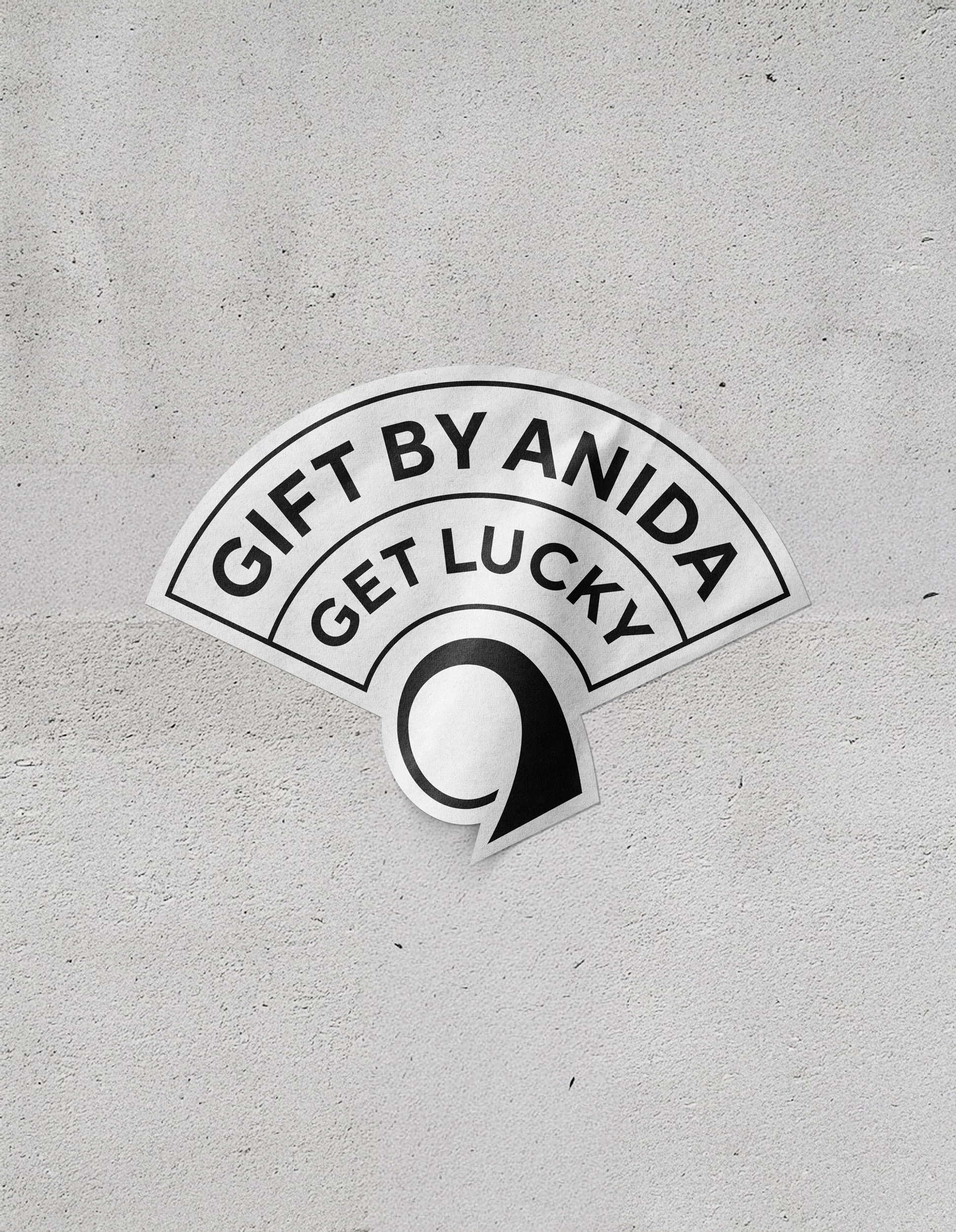 A playful side of the brand comes to life. Through bold colors, expressive typography, and sticker-style messages, Gift by Anida shows its lighter, more dynamic personality. This flexible visual language allows the brand to stay fun and approachable, without losing clarity or recognition, turning every surface into a space for interaction, surprise, and a little bit of luck.