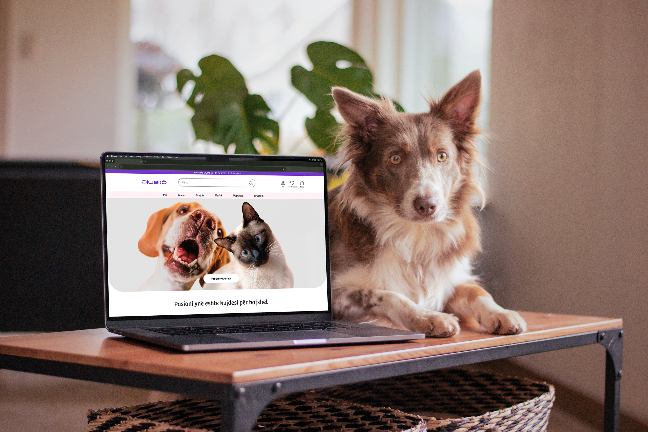 In addition to creating the brand, we also contributed to the visual direction of the website. The brand was applied in full respect of the selected visual elements, with careful attention to user experience, keeping the design balanced and uncluttered, while conveying the feeling of a pet store where care and animal well-being are the central focus.